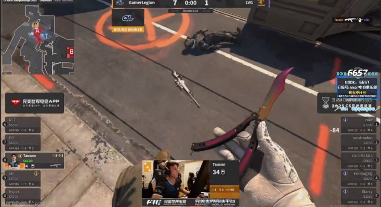 第八局Emilia在A大绕后帮助LVG打出人数优势,PR白给帮助队友2V4在A区下包!残局双方大狙各种空枪,最终Tauson一打二完成双杀,单局拿下四杀,2打4的残局GL再拿一分!1-7!