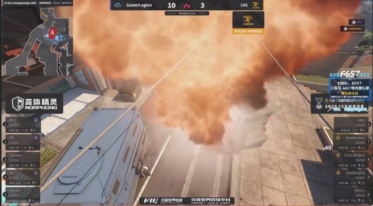 第二局REZ在厕所中段开转拿下三杀!但是Tauson也送了啊!残局2V1,C4LLM3SU3直接一发带走CT,帮助LVG再拿一分!4-10!