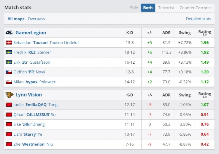 第一局是GL选图的Overpass,LVG先选防守方但是“四处漏风”,被GL连续强攻B区得手拉开分差!上半场LVG只拿三分,下半场LVG拿下手枪局之后第三局被GL的eco翻盘之后再没了追分了希望,最终GL轻松13-6拿下自选图,LVG再输一局就要被淘汰出本届CAC,一轮游!