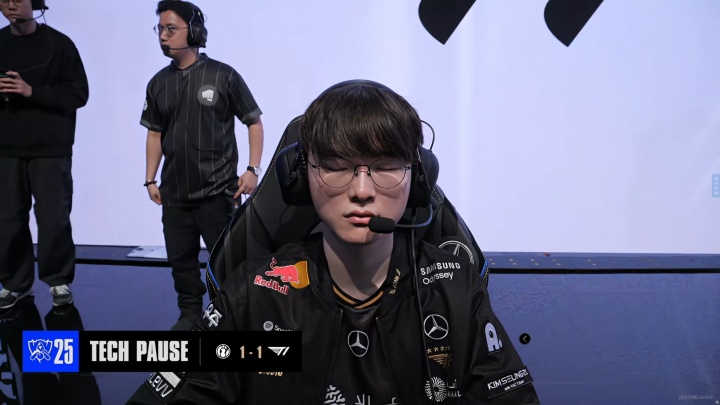 >看到你这样我就怕!第三局遇到技术暂停 Faker经典闭眼冥想