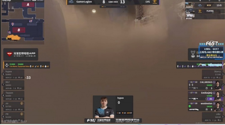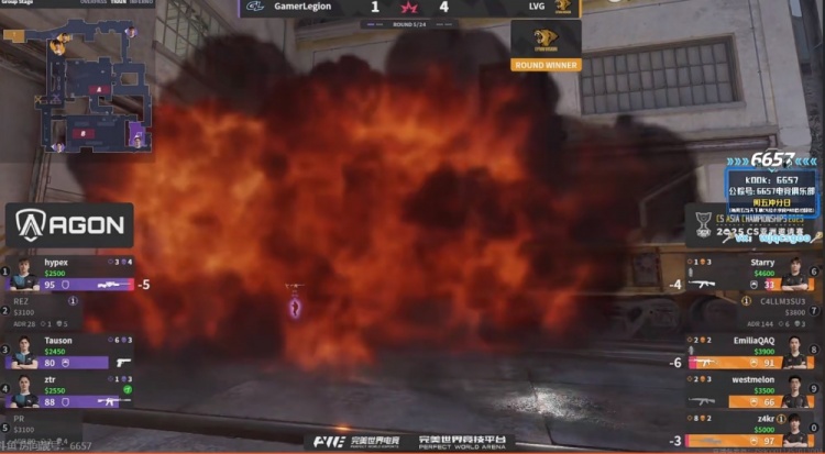第十一局LVG还是爆弹进攻B区进入包点,正面补枪LVG根本不虚,刷屏一波1换4之后Starry追死Hypex大狙!8-3!