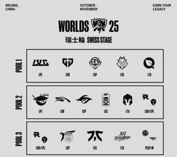 直播吧10月14日讯 S15瑞士轮抽签开始,三支LPL队伍的首轮对阵为:G2 vs TES、BLG vs 100T、HLE vs AL。