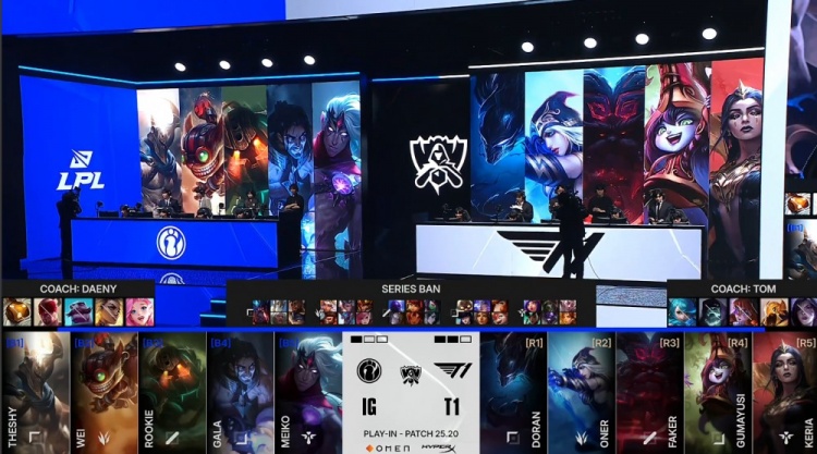 直播吧10月14日讯 2025全球总决赛入围赛,由LPL四号种子iG对阵LCK四号种子T1!