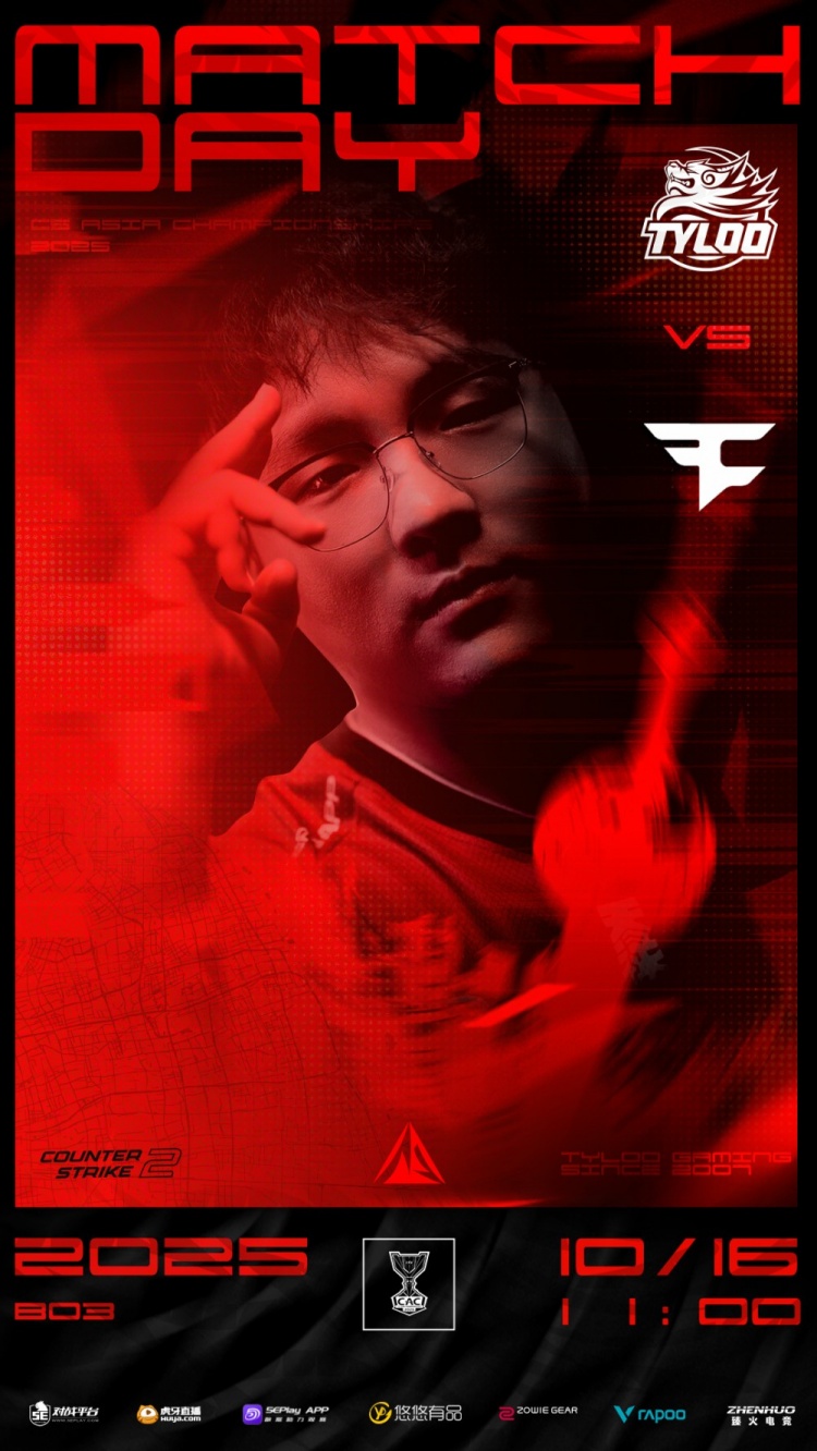 直播吧10月16日讯 2025年CAC今天继续进行,位于B组的中国战队TYLOO败者组第二轮的对手是Faze Clan!