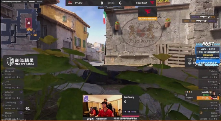 第三局FAZE也钢枪了!但是前顶香蕉道frozen还是白给了!FAZE直接赌了个3B重防,枪械优势TYLOO一波2换3占据B区!A点的jcobbb也就只能保了!5-10!