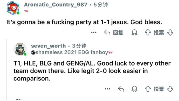 -T1、HLE、BLG以及GEN/AL的败者,祝剩下所有队伍好运吧,相比之下2-0组看起来更轻松。