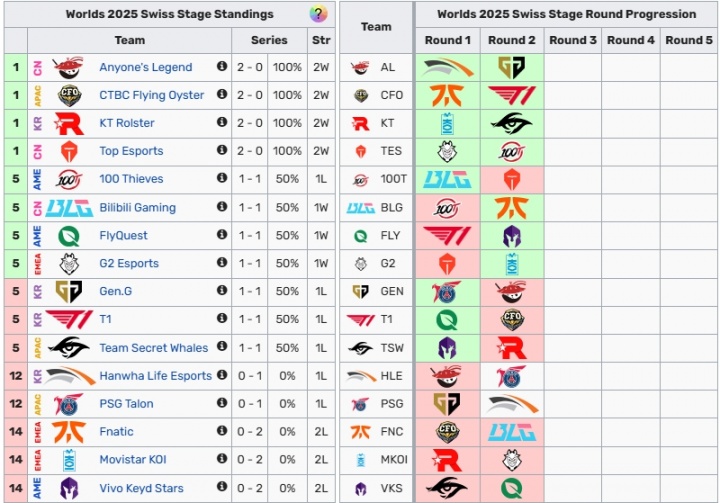 >乱套了!目前瑞士轮1-1组别有LPL一号种子和LCK一号种子+去年冠军😨