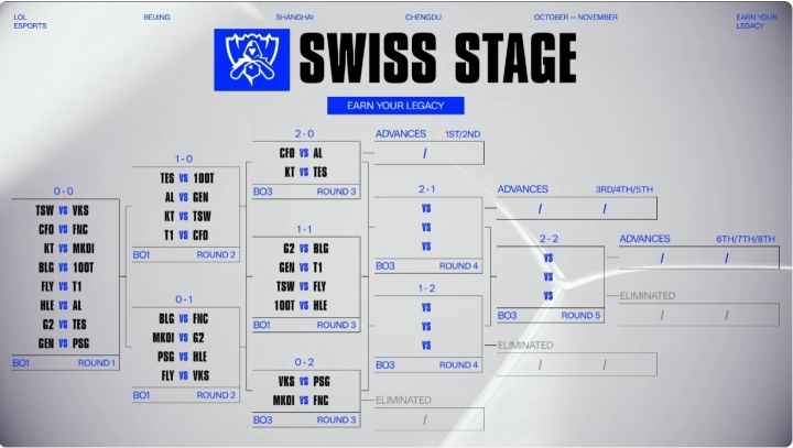 GEN、BLG、HLE、T1、FLY、G2、TSW、100T