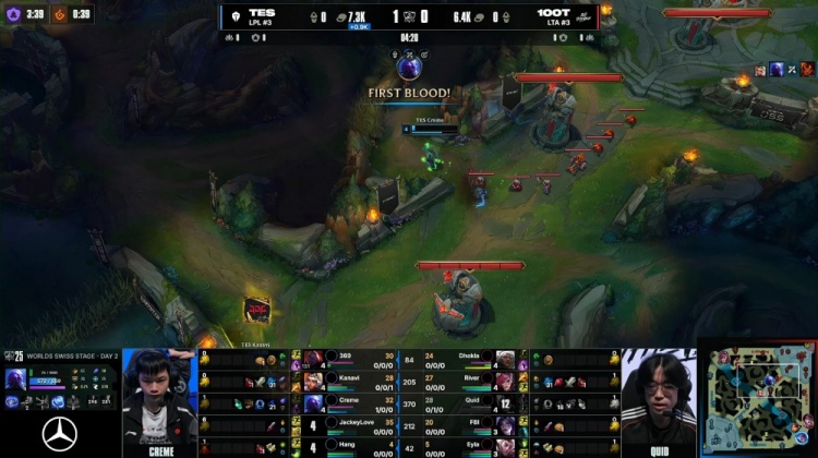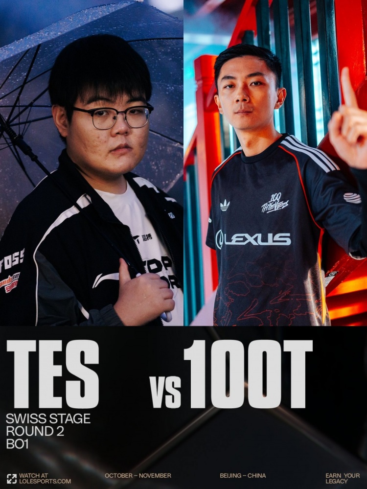 直播吧10月16日讯 2025全球总决赛瑞士轮继续进行,今日焦点之战由LPL赛区TES对阵LTA赛区100T!