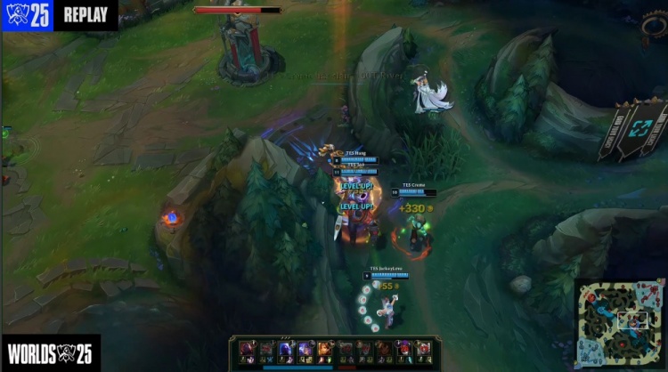 【15:38】TES上路推掉100T二塔,经济领先5k。