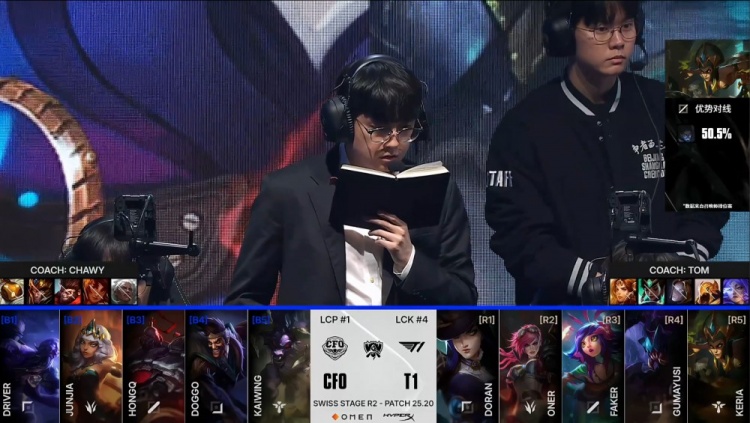 直播吧10月16日讯 2025全球总决赛瑞士轮继续进行,今日第五场比赛由LCP赛区的CFO对阵LCK赛区的T1!