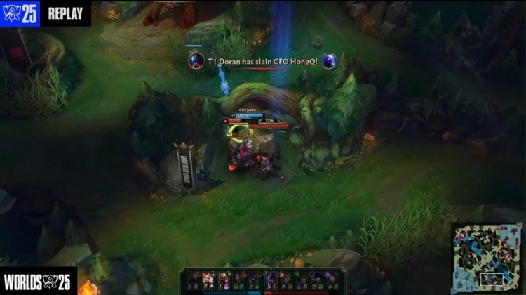 【11:05】HongQ瑞兹线上踩Faker蛇女腹地瞬间被Oner蔚轰掉,随后HongQ瑞兹复活TP正面开车带队友骑脸Faker与多兰,Junjia奇亚娜拿到双杀。