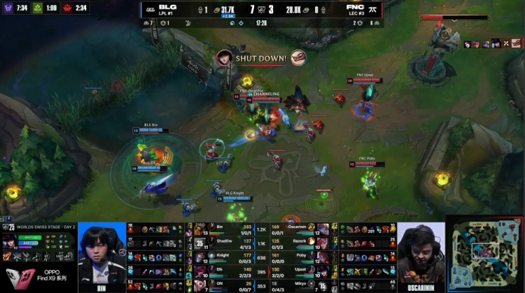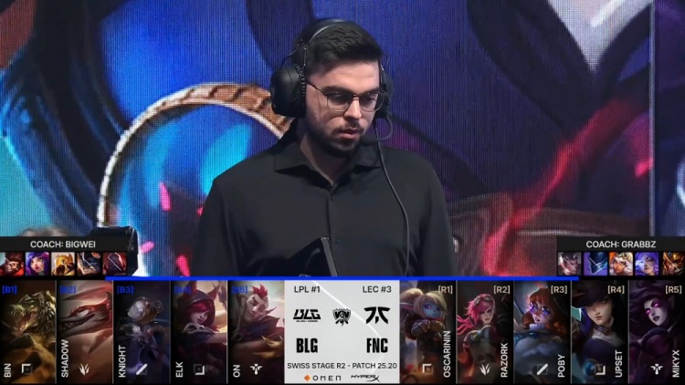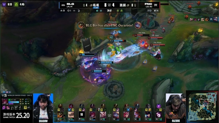 直播吧10月16日讯 2025全球总决赛瑞士轮继续进行,今日第七场比赛由LPL赛区的BLG对阵LEC赛区的FNC!