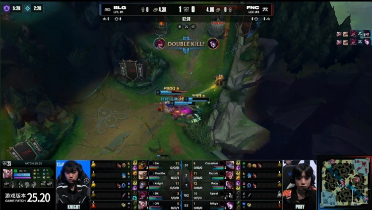 【21:33】BLG极速吃掉厄塔汗,oscarinin波比壁咚knight,双方无事发生拉开。