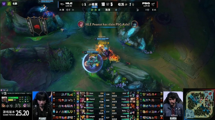 直播吧10月16日讯 2025全球总决赛瑞士轮继续进行,今日最后一场比赛由LCK赛区的HLE对阵LCP赛区的PSG!
