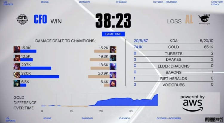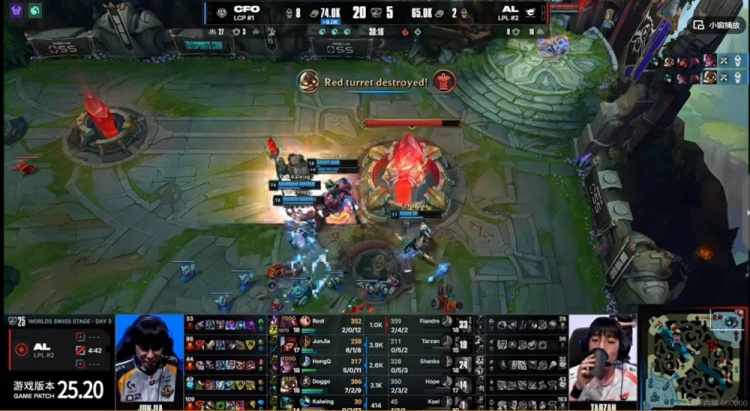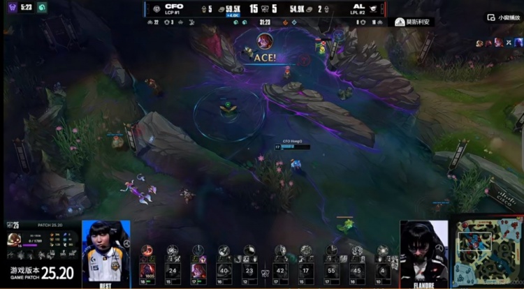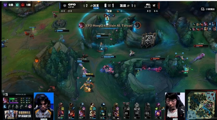 虽然AL借助Tarzan大树闪现惩抢到大龙,但是随即被CFO团灭没有龙种,决胜团AL强开库奇失败,Rest塞恩大招反开找到了落单的Hope芸阿娜!CFO追击各个击破团灭AL,先拿一分!
