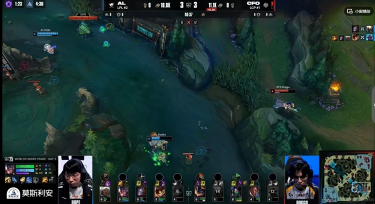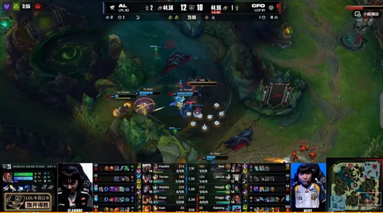 【21:20】Junjia潘森跳大先手配合人数优势直接秒掉了Shanks发条!AL反击强行换掉了HongQ阿卡丽,Kaiwing布隆双杀!CFO人数优势强打厄塔汗,但是Junjia潘森和Flandre安蓓萨互换!双方拉开!
