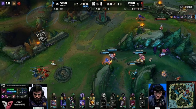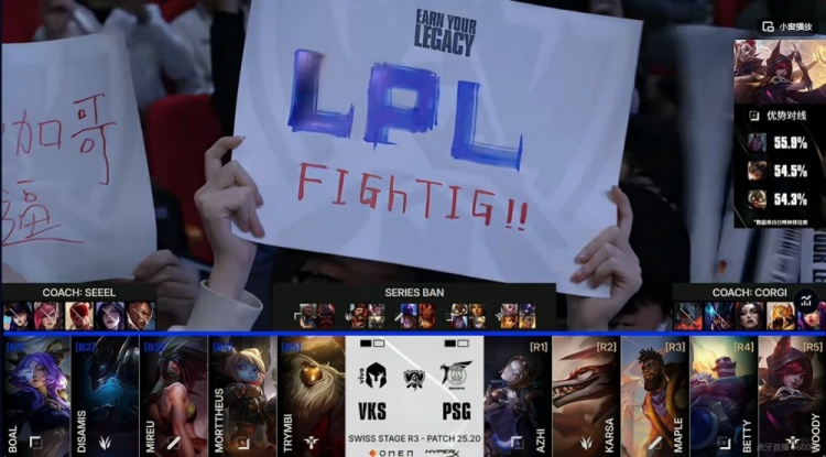 直播吧10月19日讯 2025年英雄联盟世界赛来到小组赛第五日,今天是0-2组的比赛,第二场是美洲赛区的VKS和太平洋赛区PSG的对局,双方谁输就要被淘汰!