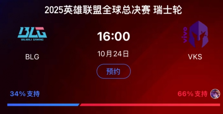 路人缘全败完了?赛前BLG的国内支持率仅34% 而VKS的支持率高达66%