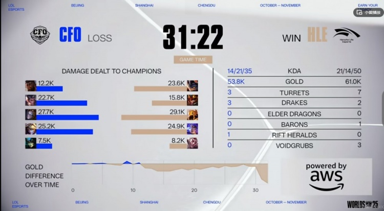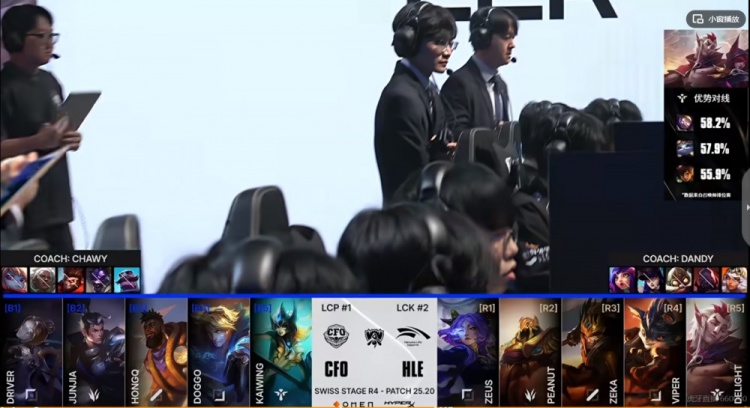 直播吧10月22日讯 2025年英雄联盟世界赛来到瑞士轮第二阶段,今天将是两场2-1组的比赛,首场将是LCK的二号种子HLE对阵LCP的头号种子CFO!