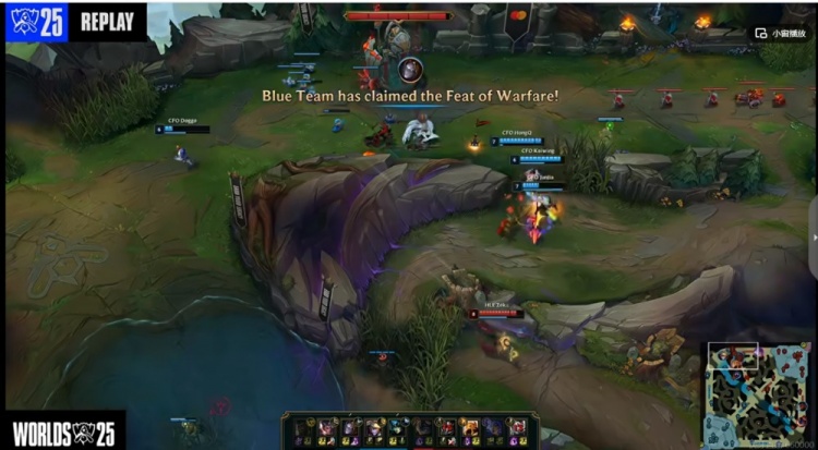 【11:33】HLE先开小龙,CFO想接但是又被Zeka沙皇推回了两个!HongQ发条直接白给!虽然Junjia赵信抢到了小龙,但是正面的中下辅三个人全部阵亡!HLE的0换3!本局火龙魂!