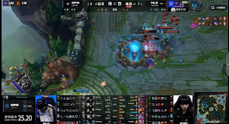 HLE:上单Zeus、打野Peanut、中单Zeka、下路Viper、辅助Delight