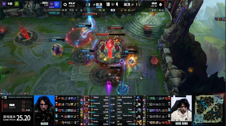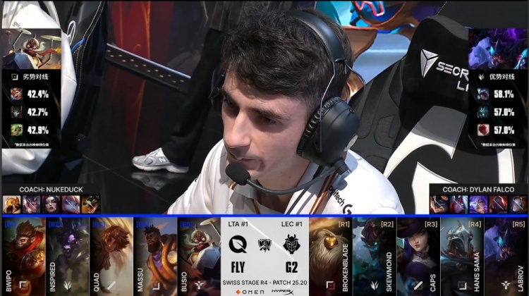 直播吧10月22日讯 2025全球总决赛瑞士轮继续进行,在2-1组中G2将对阵FLY!