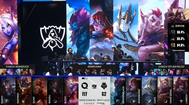 直播吧10月22日讯 2025全球总决赛瑞士轮继续进行,在2-1组中G2将对阵FLY!