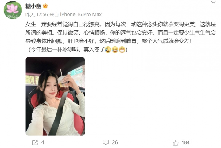 图中还可看到屏幕上显示“李总,祝您用车愉快”,这和糖小幽本名李幽子也能相互佐证。
