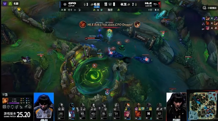 第一局:🎮数值差距!Zeka沙皇12分钟5个头超前发育 HLE团灭CFO先取一分