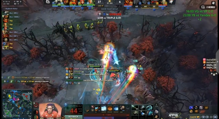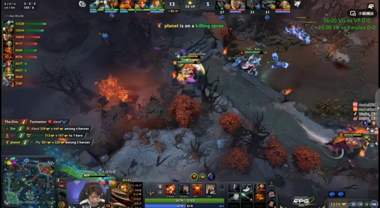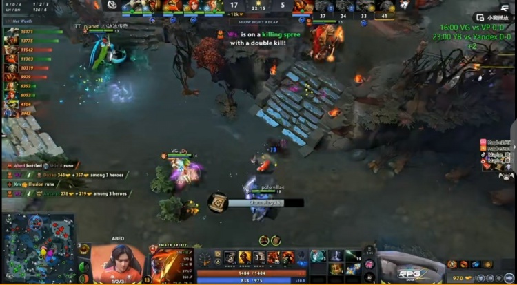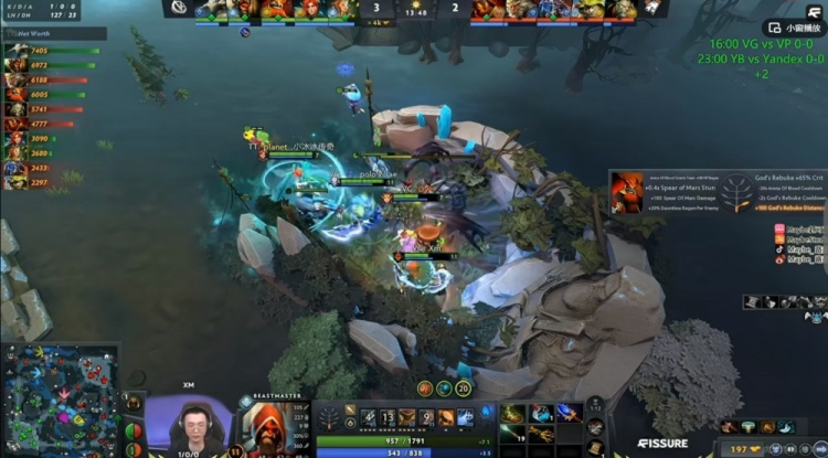 【22分钟】VG在河道依靠Ws马尔斯反矛留住没有BKB的Timado大圣,回头上面的Xm兽王被动,但是他开出BKB了啊!Ws马尔斯框大两个拿下双杀,VG各个击破又是一波0换4!