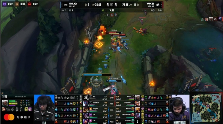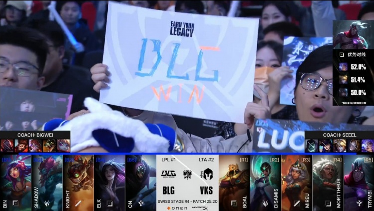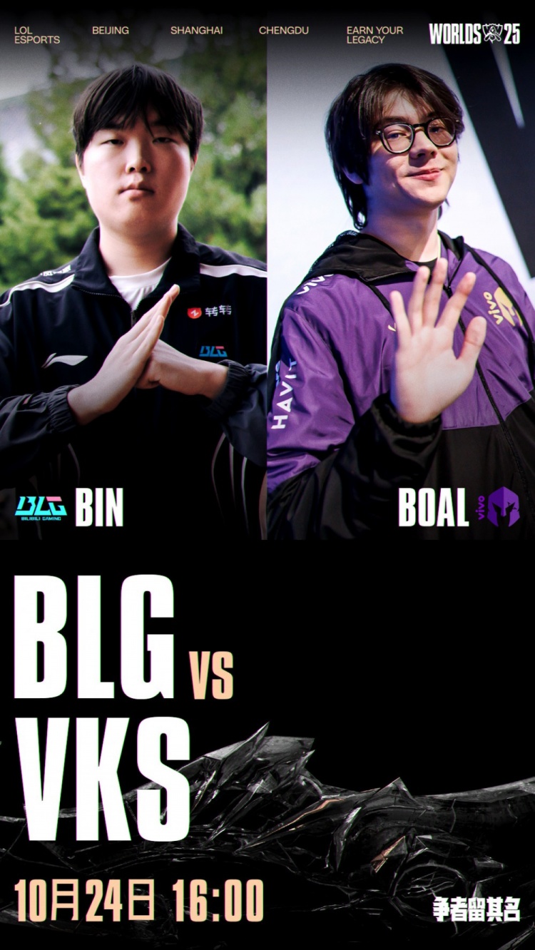 直播吧10月24日讯 2025全球总决赛瑞士轮继续进行,今日1-2组焦点大战,由BLG对阵VKS!