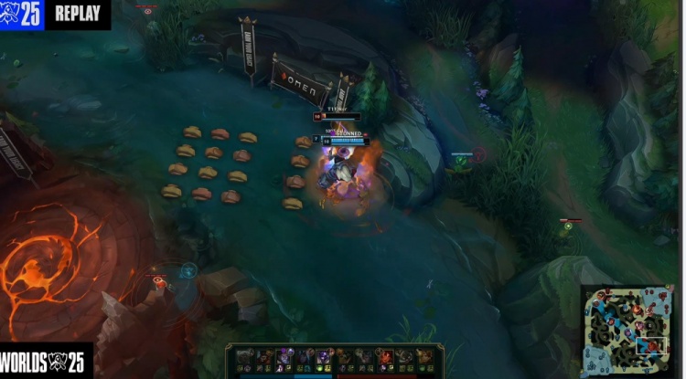 【24:52】100T河道追击,Oner赵信被套虚弱,100T强杀Oner得手后回头吃掉大龙,经济落后1k。
