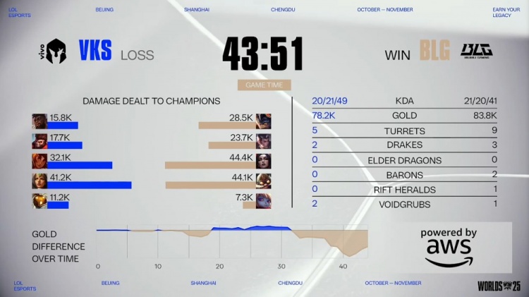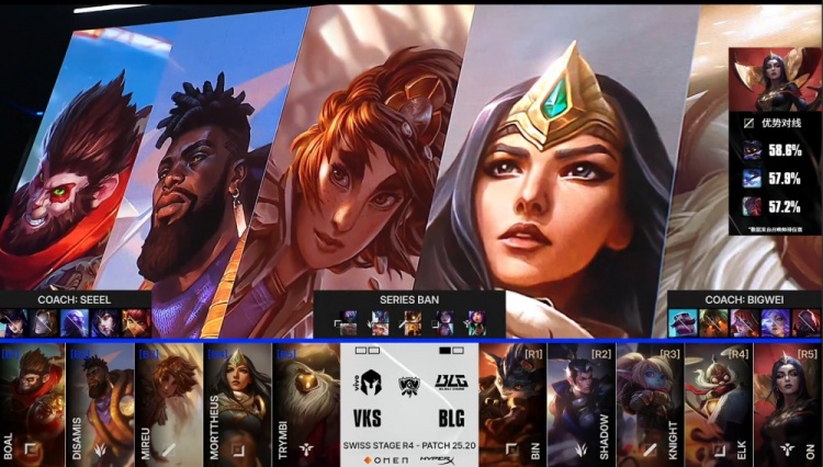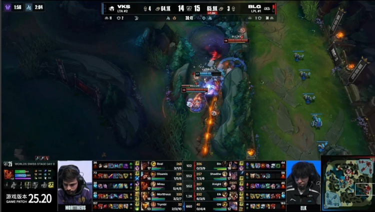 直播吧10月24日讯 2025全球总决赛瑞士轮继续进行,今日1-2组焦点大战,由BLG对阵VKS!