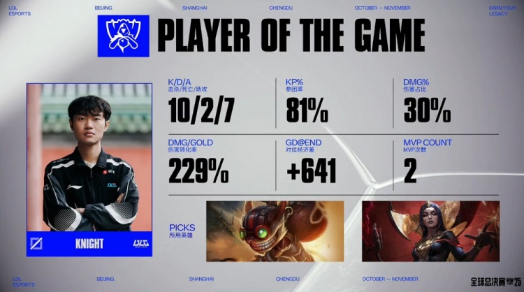 【38:59】knight妖姬野区轻松融化Morttheus希维尔将其单杀,BLG轻松回头再吃大龙,听牌风龙魂,经济领先7k。