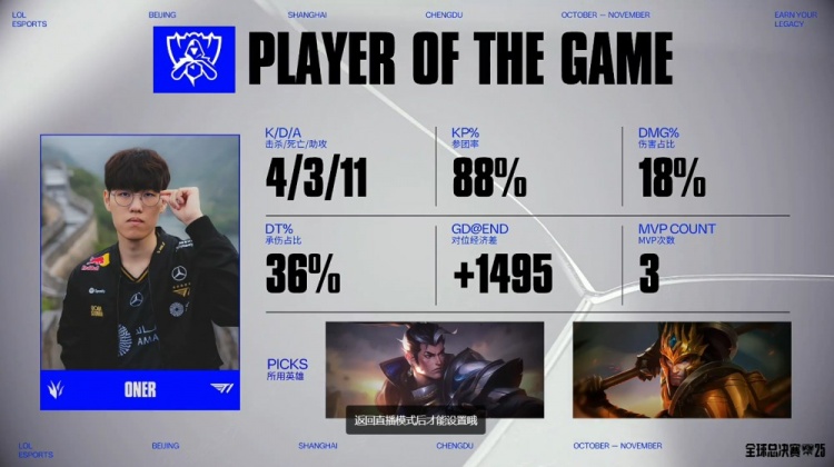 第一局:🎮汗流浃背!Faker三抬戴罪立功 Oner赵信捅爆100T T1赢首局