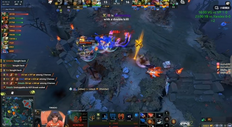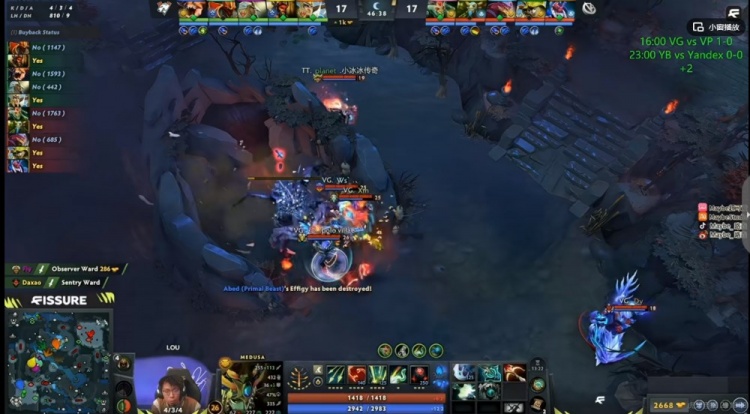 【49分钟】Lou美杜莎拆掉双子塔,Timado龙骑士和Daxak兽王先后被击杀交出买活,但是一个没变龙一个没大招!Ws滚滚双开车留人,Timado龙骑士买活死之后VP没了战斗力!VG终于拿下首胜!