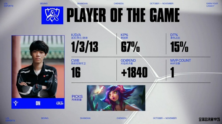 中期BLG拿到先锋中下推进,ON妮蔻开TES两人,阿Bin再杀333兰博,BLG打出0换3,经济领先3k。厄塔汗团战ON妮蔻绕后开TES四人,Elk芸阿娜与knight吉格斯各取双杀,BLG团灭TES,经济优势来到6k。