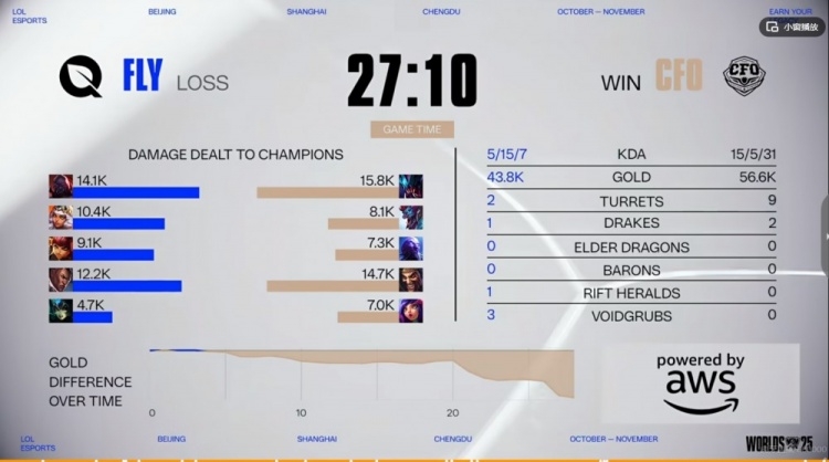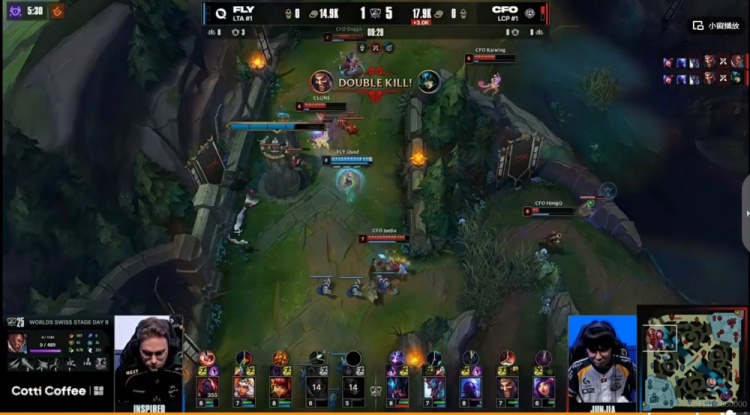 直播吧10月25日讯 2025年英雄联盟世界赛来到瑞士轮最后一天,2-2组的生死战第一场是CFO对阵FLY!