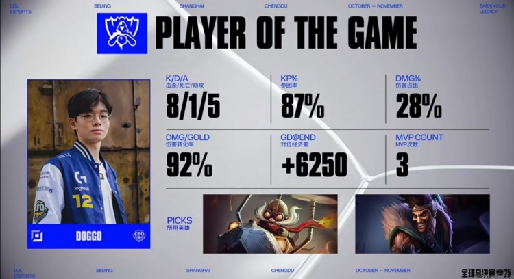【14:12】Doggo德莱文肉身抗住Massu卢锡安大招,配合队友一起拆掉了FLY的中一塔!