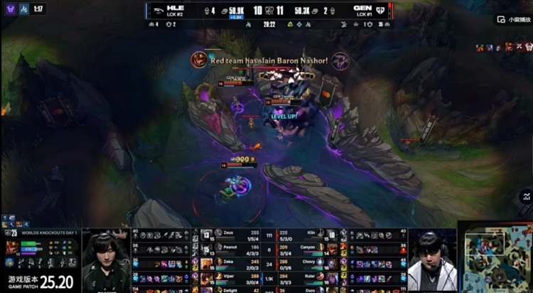 直播吧10月28日讯 2025年英雄联盟世界赛来到淘汰赛阶段,八强赛的第一场将是LCK内战,GEN对阵HLE!