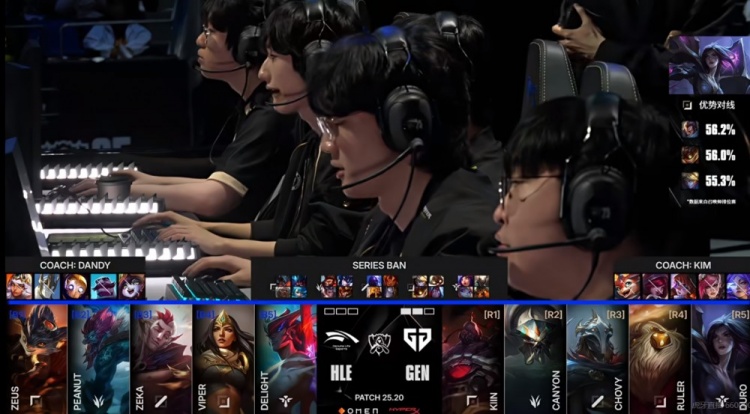 HLE:上单Zeus、打野Peanut、中单Zeka、下路Viper、辅助Delight