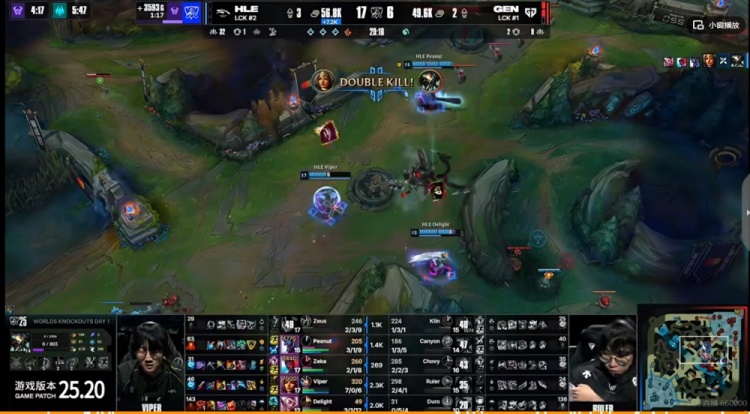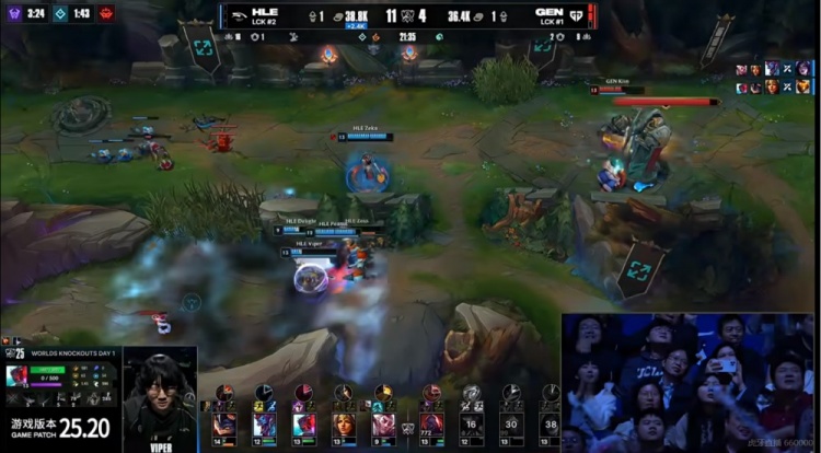 直播吧10月28日讯 2025年英雄联盟世界赛来到淘汰赛阶段,八强赛的第一场将是LCK内战,GEN对阵HLE!