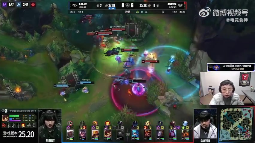直播吧10月28日讯 S15八强赛GEN对阵HLE,水晶哥看比赛;