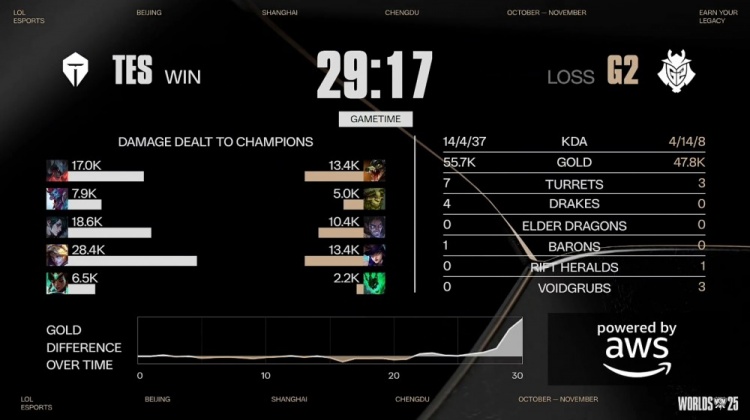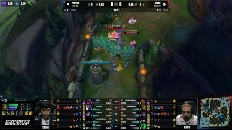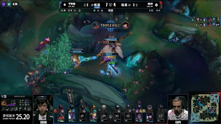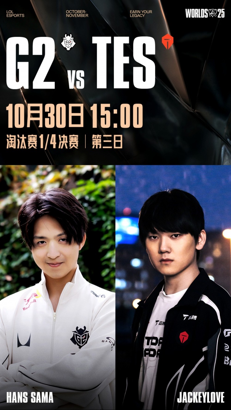 直播吧10月30日讯 2025全球总决赛淘汰赛1/4决赛,由TES对阵G2!