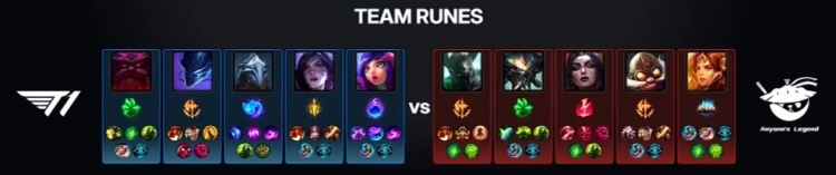 中期厄塔汗团战Flandre铁男逮捕Faker与小吕布,AL打出1换5团灭T1后拿到厄塔汗,但经济劣势依旧存在2.5k。后续大龙团小吕布卡莎见面先杀王杰,Tarzan蝎子再拉T1三人,双方打出3换3。T1调转枪口对准Flandre,随后团战Flandre两度遭到T1集火阵亡,T1打出2换5吃掉大龙,经济优势来到7k。