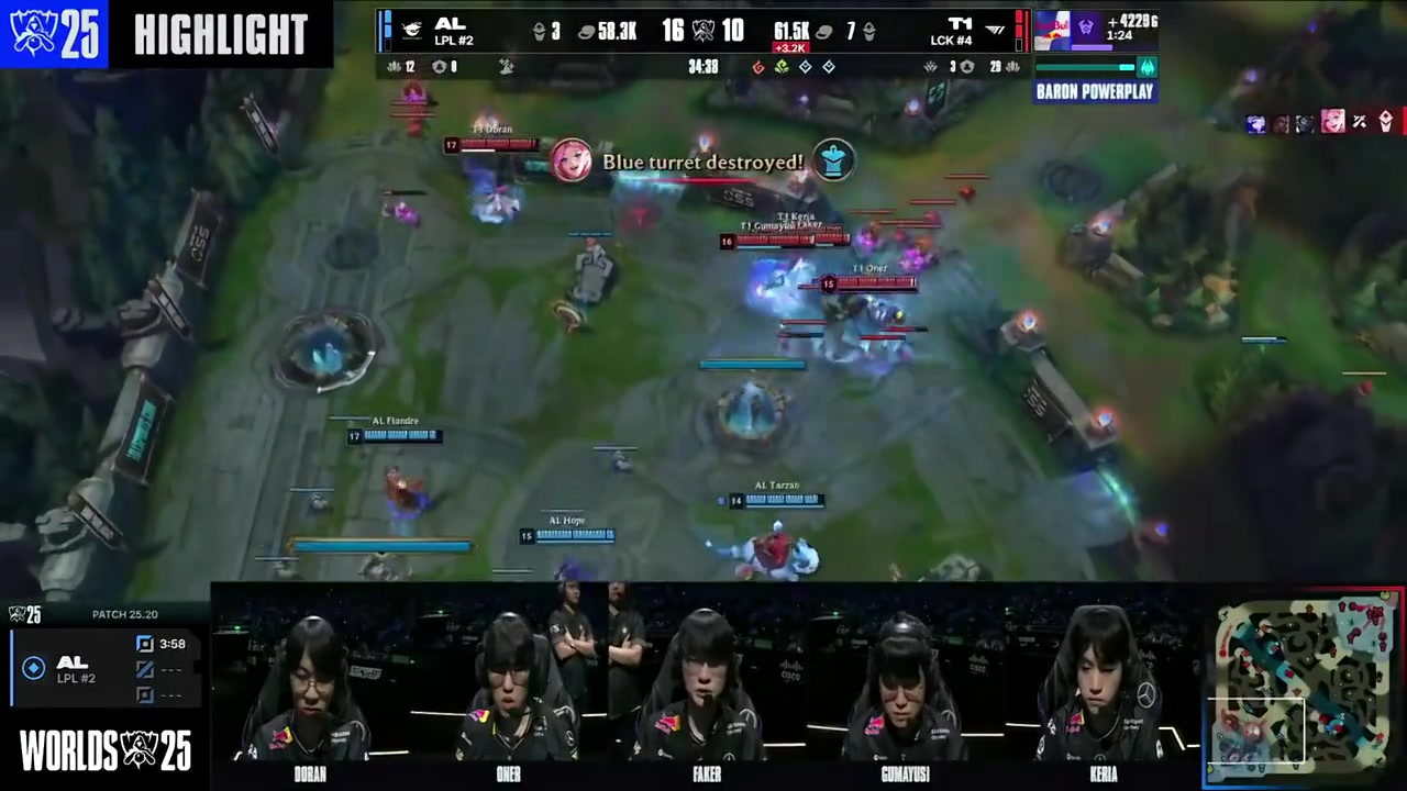 直播吧10月31日讯 2025英雄联盟全球总决赛八强第四场比赛T1以3比2战胜AL晋级四强,赛后LCK官方公开最后一波赛事语音;