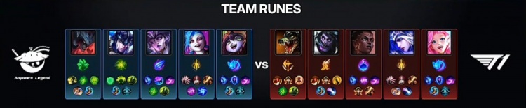 决胜局前期Tarzan小猪抓下,Kael璐璐换掉小吕布艾希,河道团战AL打出1换3,双方随后开始在地图上博弈,T1极速拿到三条小龙听牌电龙魂。