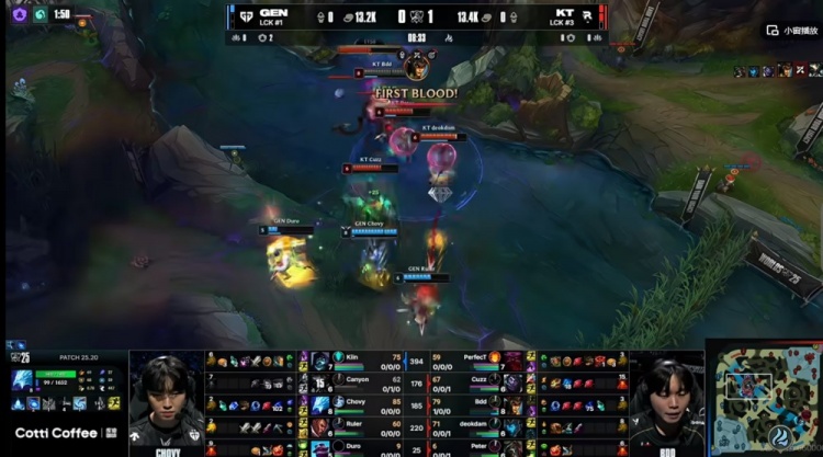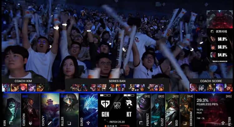 直播吧11月1日讯 2025年英雄联盟世界赛来到淘汰赛阶段,半决赛的首场是LCK内战,GEN对阵KT!