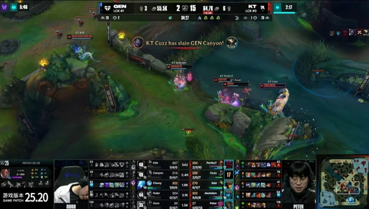KT:上单PerfecT、打野Cuzz、中单Bdd、下路Deokdam、辅助Peter